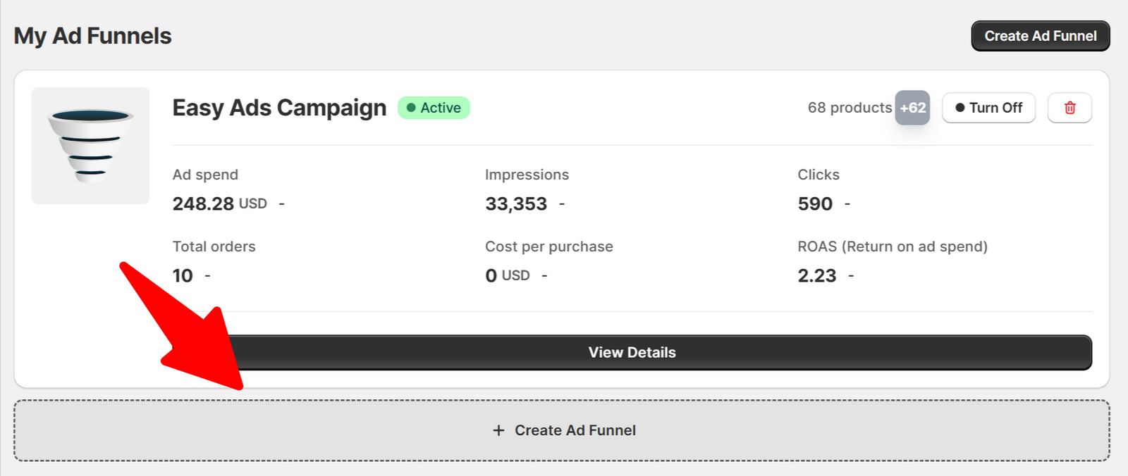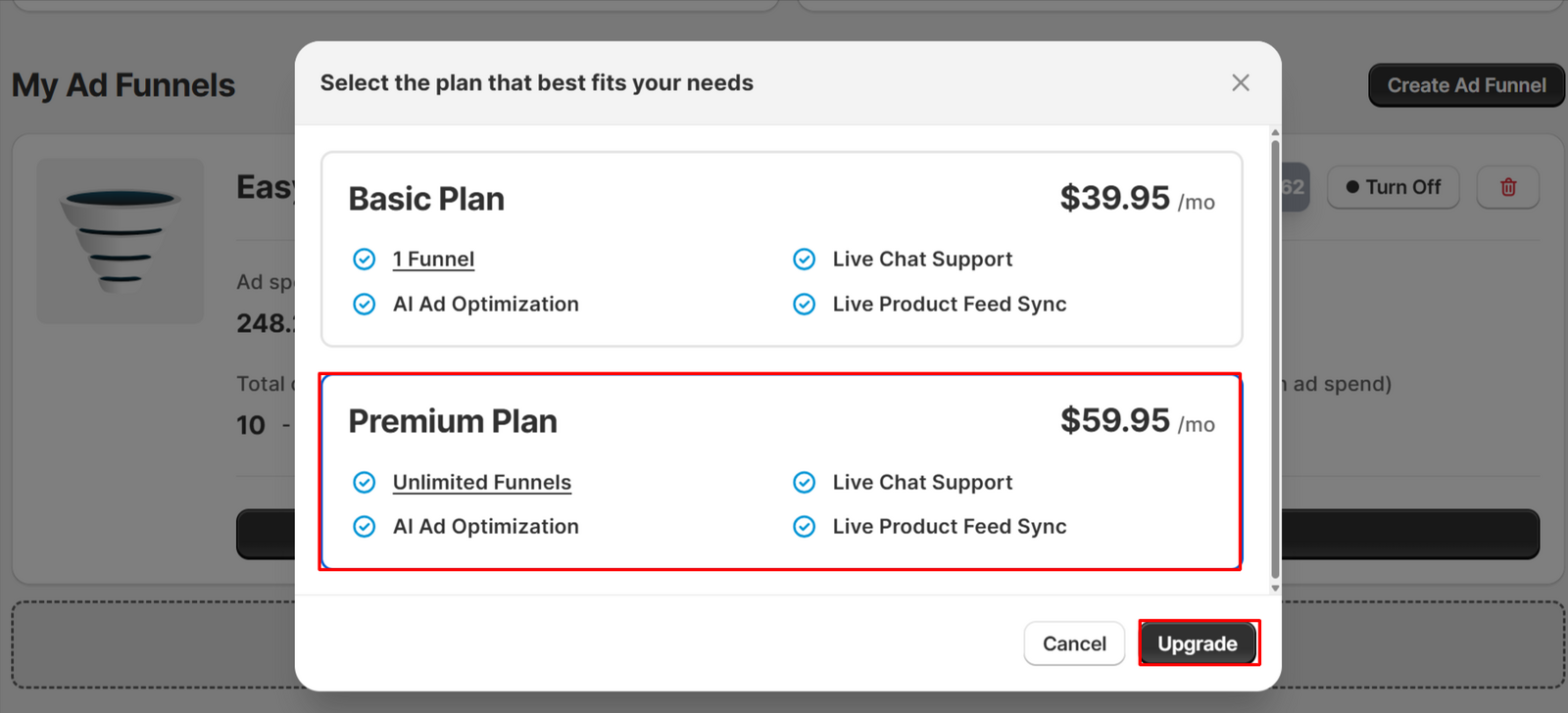 To create multiple funnels, you may need to upgrade your Easy Ads subscription.